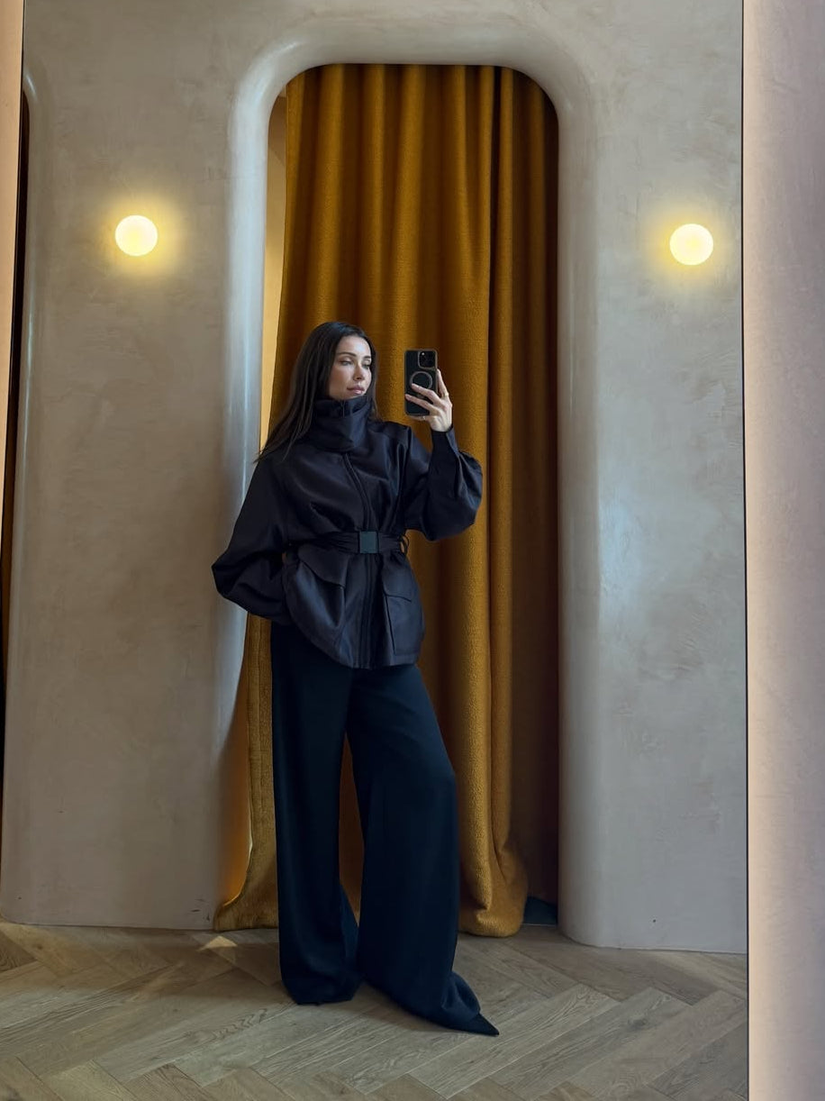 Ayana Gathered Cardigan - Charcoal