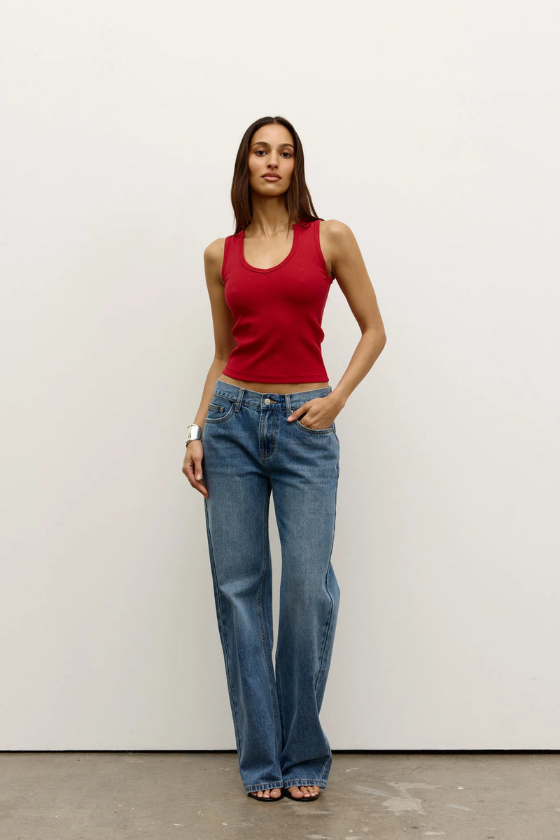 Effortlessly cool and endlessly wearable. The Avery Jeans feature a mid/low-rise fit with a relaxed straight leg, crafted in soft, structured denim. Designed for all-day comfort with timeless appeal.