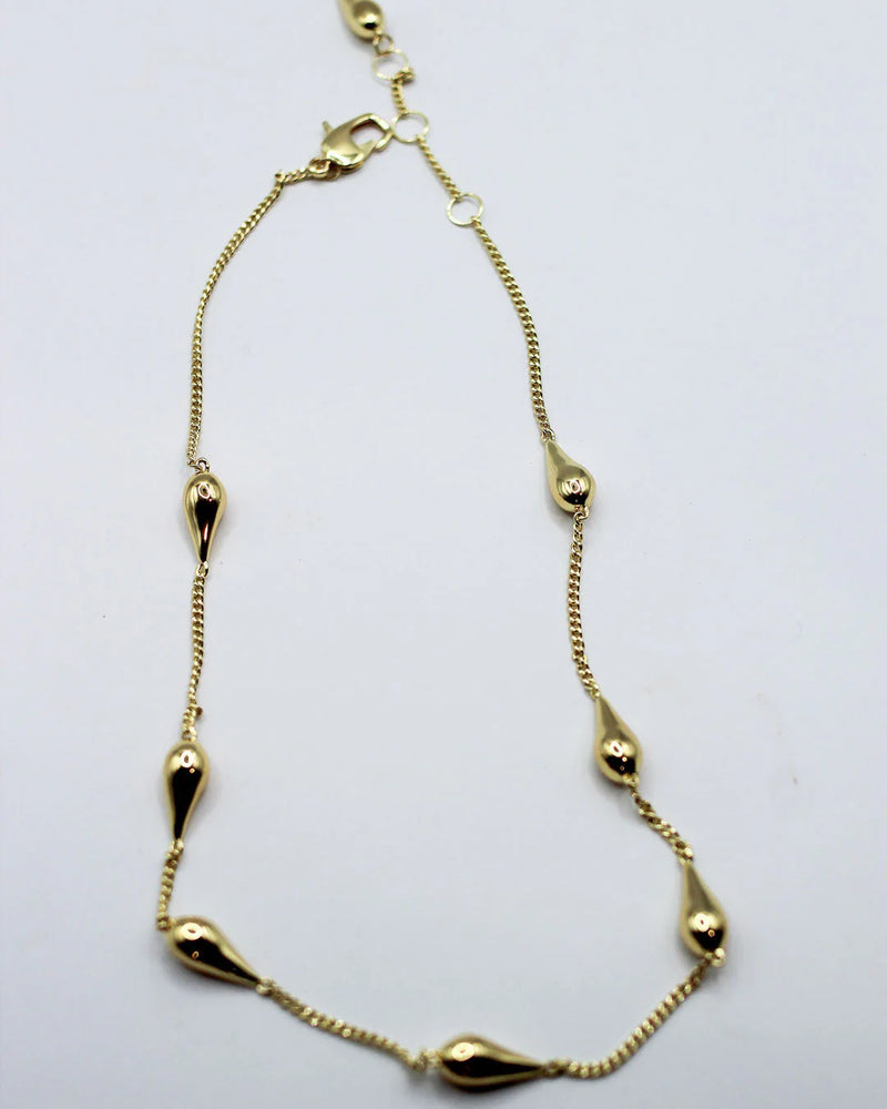 The Rainfall Chain Necklace is a modern styling essential. Featuring our handcrafted droplet shape that is used throughout our collection to adorn a classic curb chain. This piece is ideal for layering or wearing on its own.